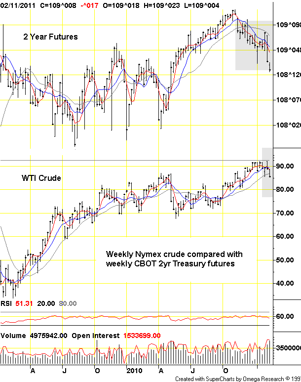 Holding the price below $80 would break the medium- term trendline and suggest the bull market in crude that has existed since Spring of 2009 is over. Since the high in 2008 the oil market has experienced a bull rally in a longer- term bear market similar to bear market rallies in stocks and commercial bonds. A return to the bear trend in crude would mean bear markets elsewhere as well as deleveraging and redemptions. Under the current regime of structural imbalances and defective central bank strategies such deleveraging could prove chaotic.