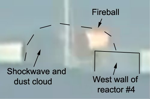 - The center of this explosion is low and the axis of the blast vertical. Its source is within the reactor containment. The explosion in unit 1 was similar but lacked the force of this explosion..