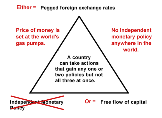 Central banks and others attempt to set the price of money by ‘fixing’ or manipulating interest rates: there are ‘bond vigilantes’, ‘Libor rigging’, central bank bond-buying and ‘Quantitative Easing/QE’. Meanwhile, petroleum mass-consumption has shifted the credit-cost of money toward the petroleum-cost of it. Central bankers are fringe players in this new game: zero-percent reserve rates and other policies don’t work any more. There is the hated liquidity trap, the pushing of the string, central banks without relevance.