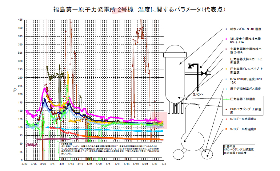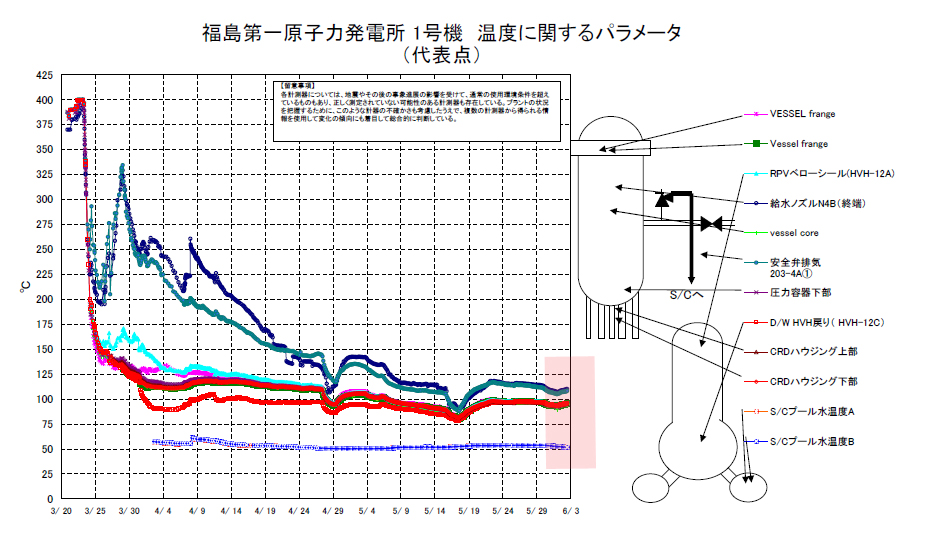 The temperature trend in this reactor unit is rising. Keep in mind that much of Fukushima’s instrumentation was damaged of destroyed by the earthquake and subsequent meltdowns/explosions. Individual instrument readings are not reliable.